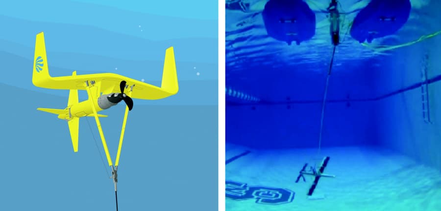 In a scenario Vermillion sketched out, an underwater kite could be deployed from the AUV parked on the seabed. As the kite executes figure-8 orbits at speeds that are several times that of the prevailing flow, it could generate electricity to recharge the UAV’s battery.