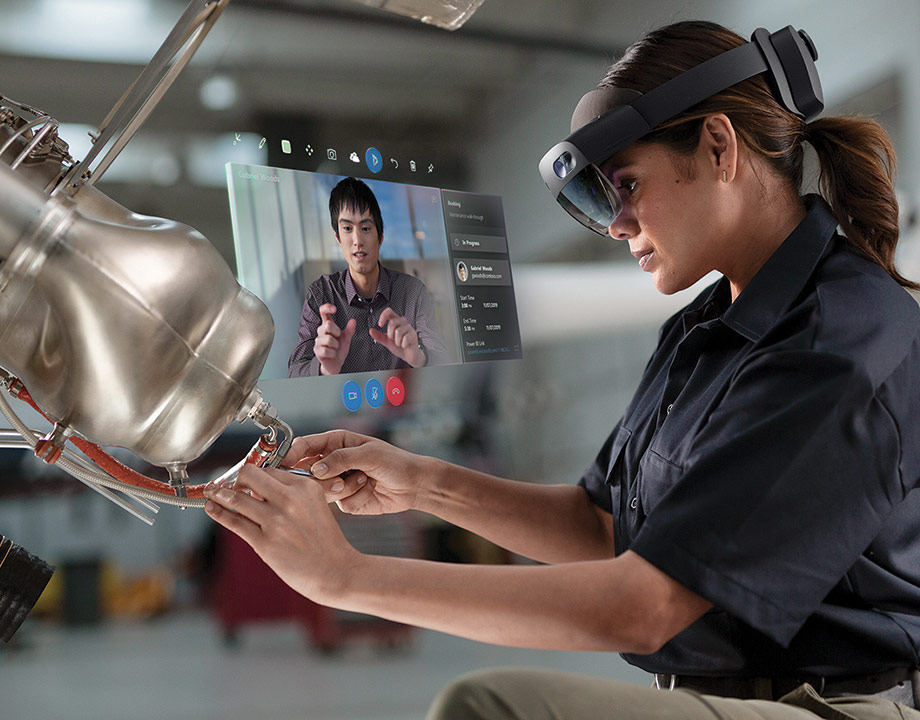 The Microsoft HoloLens allows users to video chat with experts remotely for step-by-step guidance. Image: Microsoft