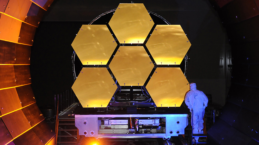 This meant Webb’s primary mirror needed the ability to reflect infrared light—something beryllium doesn’t do well. The solution was to coat the primary mirror in gold, which reflects about 99 percent of infrared light. To do that, all 18 mirror segments were placed inside a vacuum chamber, where a small amount of gold was vaporized and deposited onto their surfaces in 100-nanometer-thick layers.